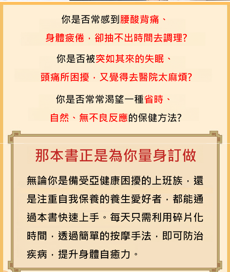【自己和家人的健康管理師】徒手按摩治百病